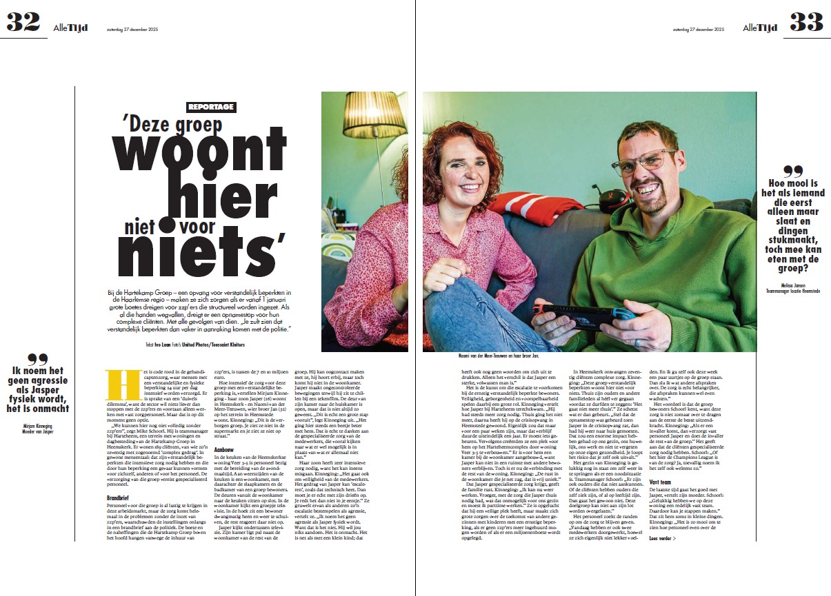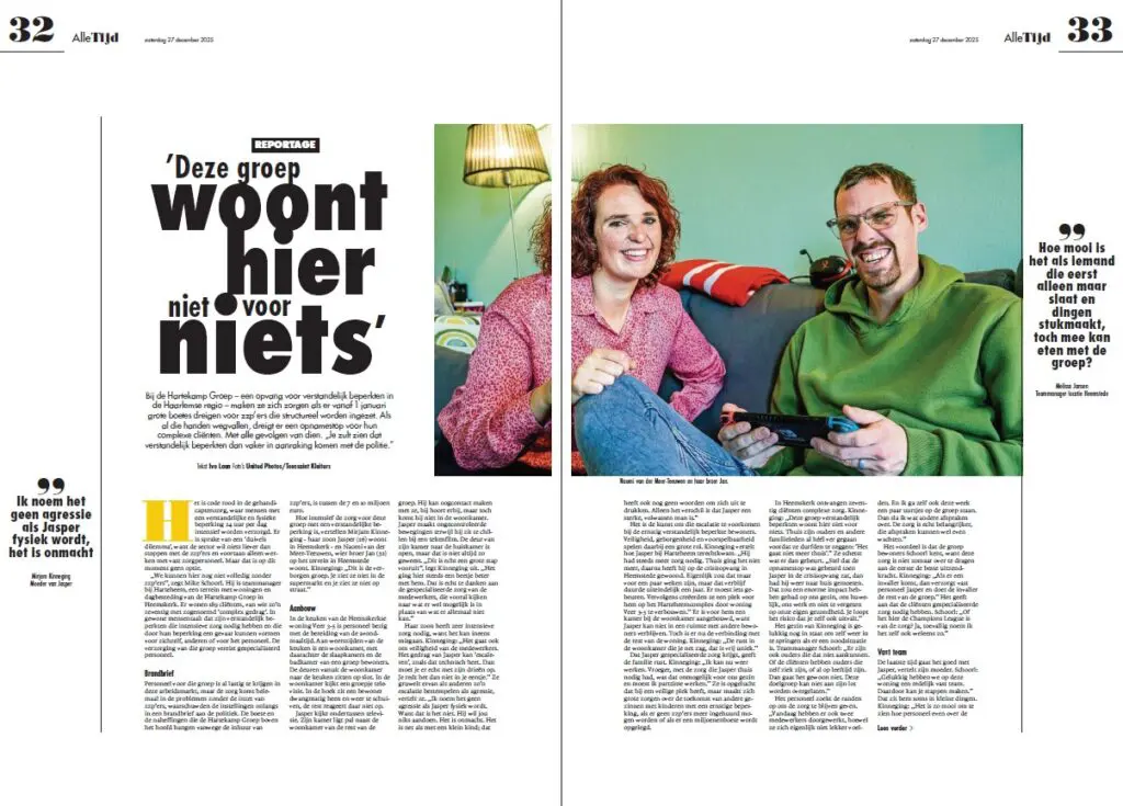 Op 27 december verscheen er een reportage in het Haarlems Dagblad. De reportage gaat over het afschalen van de inzet van ZZP’ers en de gevolgen voor de gehandicaptenzorgzorg. In het artikel komen collega’s en de ouders van cliënte Jasper aan het woord.
